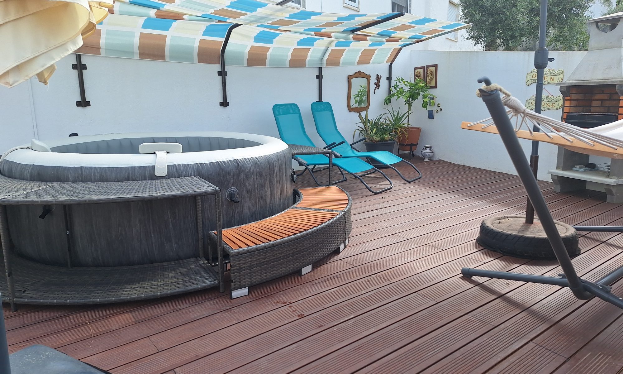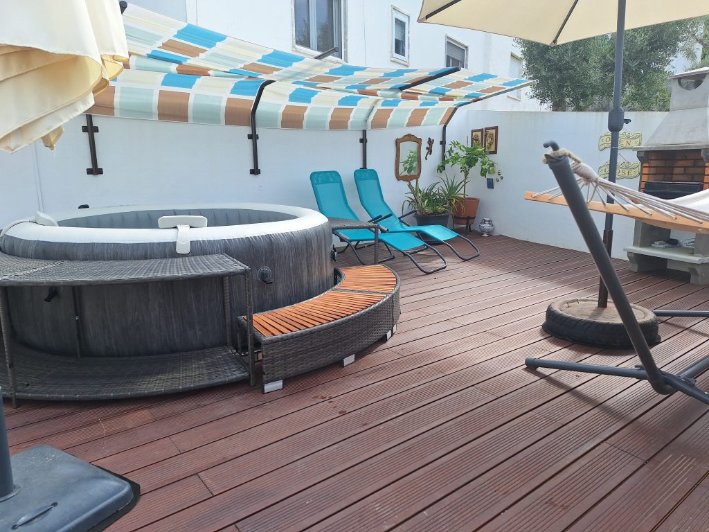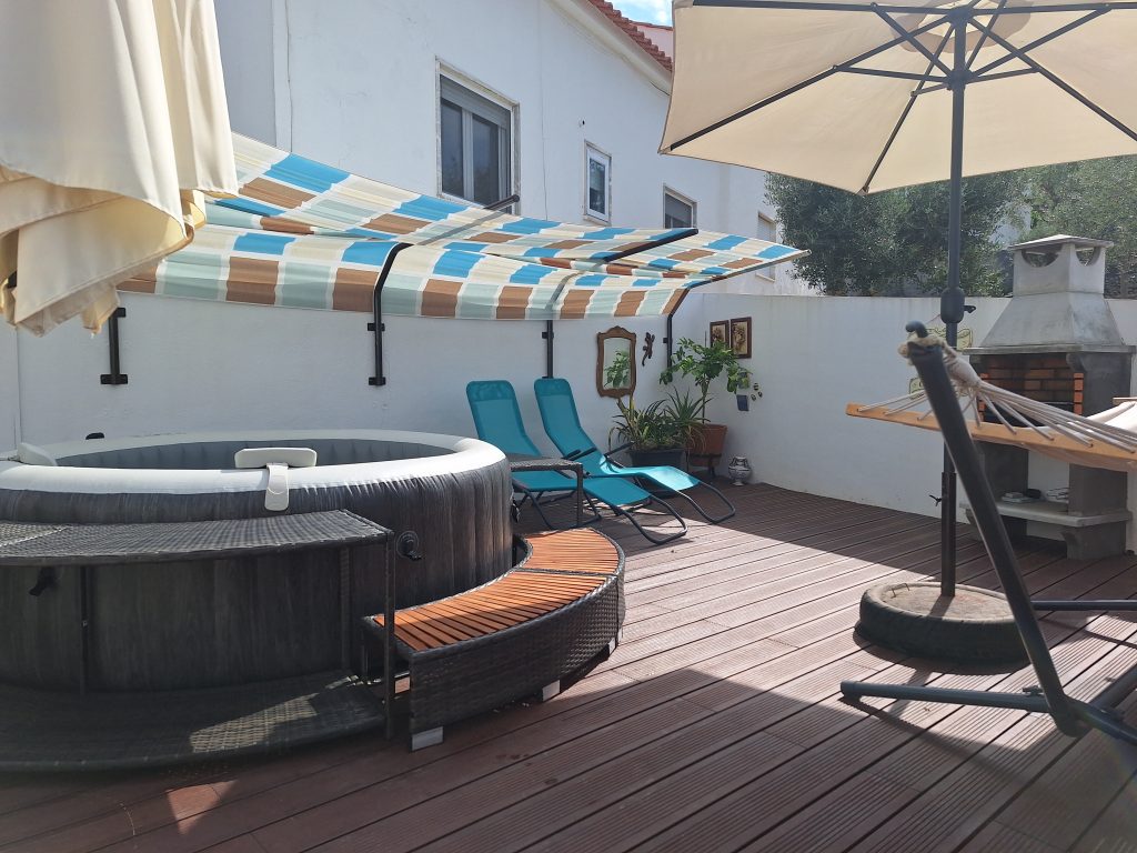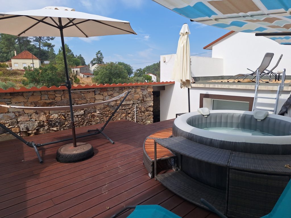 A nossa segunda casa, com um design muito fora de vulgar, com paredes de pedra, muitos acentos de madeira e ferro, ideal para um, ou dois casais. No mezanino dispõe de uma cama de casal, um espaço de convívio com 2 sofás, com televisão, livros e jogos de tabuleiro. No piso térreo há um quarto com cama de casal, um espaço de convívio e mesa de trabalho. A kitchnete, o espaço de refeições e as casas de banho também estão no piso térreo. Uma vivenda morada, com espaço exterior de luxo, com mobília de jardim, jacuzzi, sombras e churrasqueira.